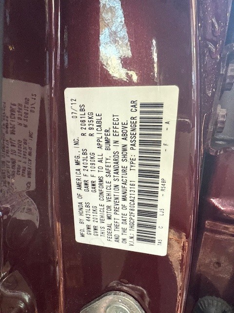 | VIN #: | 1hgcp2f80ca213161 |